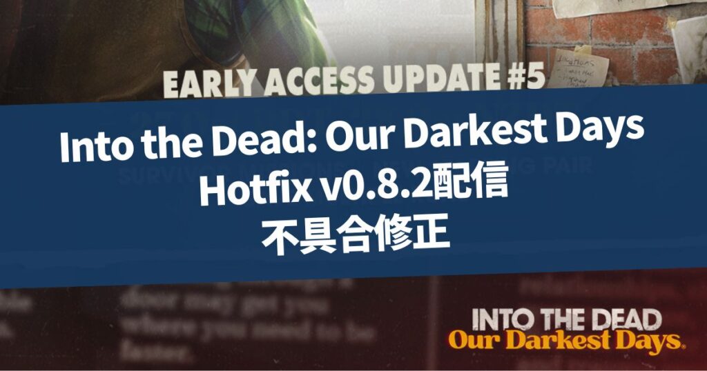 2025年10月28日にInto the Dead: Our Darkest Daysのアップデート5が配信されてから、初めてのHotfixとなるv0.8.2が2025年11月18日未明に配信されました。今回のパッチは633バイトという極めて小規模な修正で、内容は1件の不具合対応のみです。 直近のアッ... -