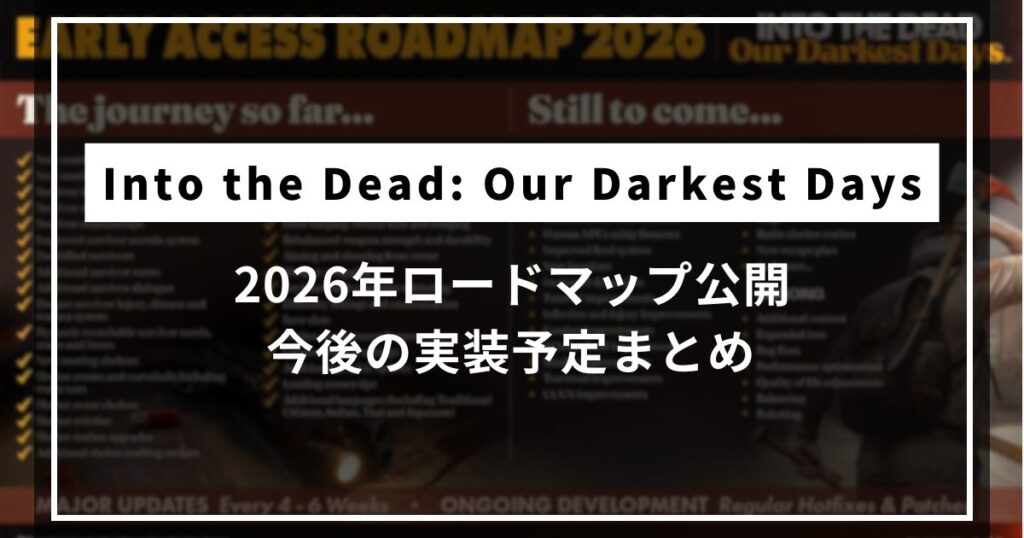 2026年1月15日に大型アップデート「Heart of Darkness(闇の奥)」が配信された『Into the Dead: Our Darkest Days』ですが、続く2月アップデートの内容が告知されました。規模自体は控えめながら、ユーザーから要望の多かった改善が含まれており、ゲーム... -