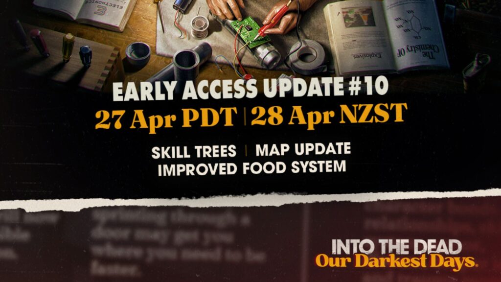 2026年4月1日(水)、『Into the Dead: Our Darkest Days』Early Access Update #10が2026年4月28日(火)に配信予定と発表されました。公式告知では、スキルツリー実装、食料システムの改善、初期シェルター調整と新たなロケーション追加を含むマップ更新... -