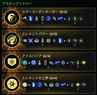 - プライマリかセカンダリに属性を付与する上位アイテムの入手が最優先(最低1種類)
