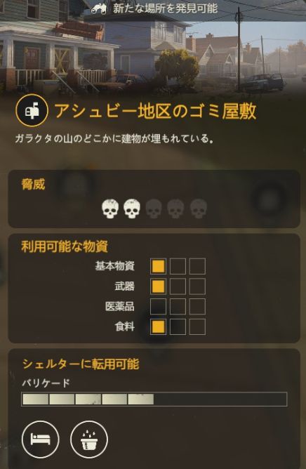 ゾンビの配置、望遠鏡の位置、物資やアイテムの収集ポイントを網羅し、アシュビー地区北部の拠点候補として有力な「アシュビー地区のゴミ屋敷」の攻略情報を解説します。