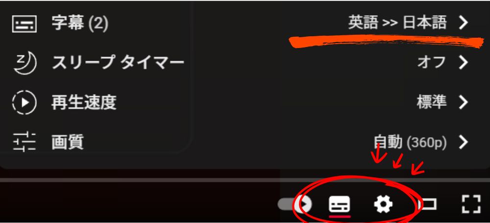 • YouTubeのプレーヤー右下にある字幕アイコンをクリック。(アイコンの下に赤線が表示されればONになっています)