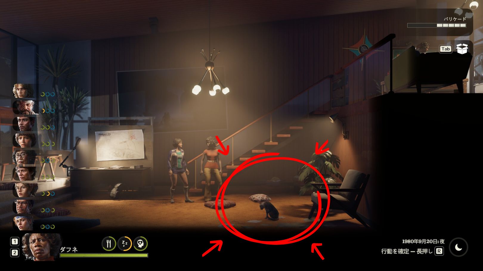 あとシステムとしての動物(ペット)はまだ実装されていませんが、動画でも登場していたキングサイド地区のフィッツジェラルド家を拠点化すると、拠点内に猫が配置されます。
