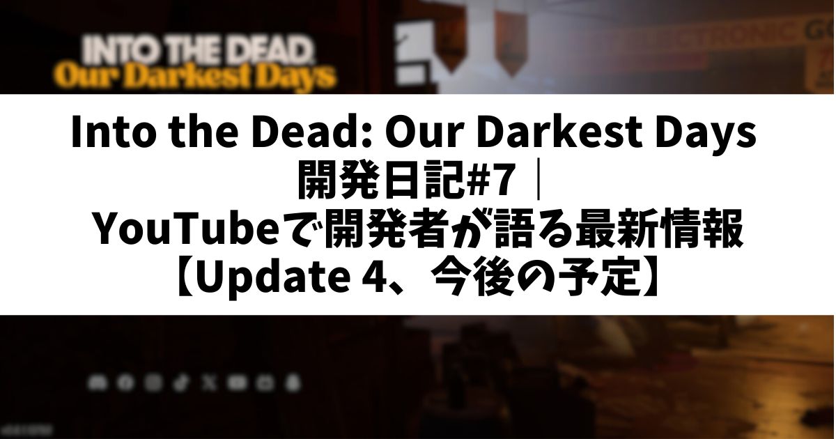 Into the Dead 開発日記#7|開発者が語る最新情報【Update 4、今後の予定】