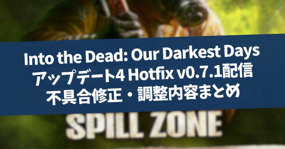その修正を目的とした「Hotfix v0.7.1」が9月30日に配信され、クラッシュ対策やゾンビ挙動の改善、脱出計画「スピルゾーン」に関連する修正・調整(改善)が行われました。