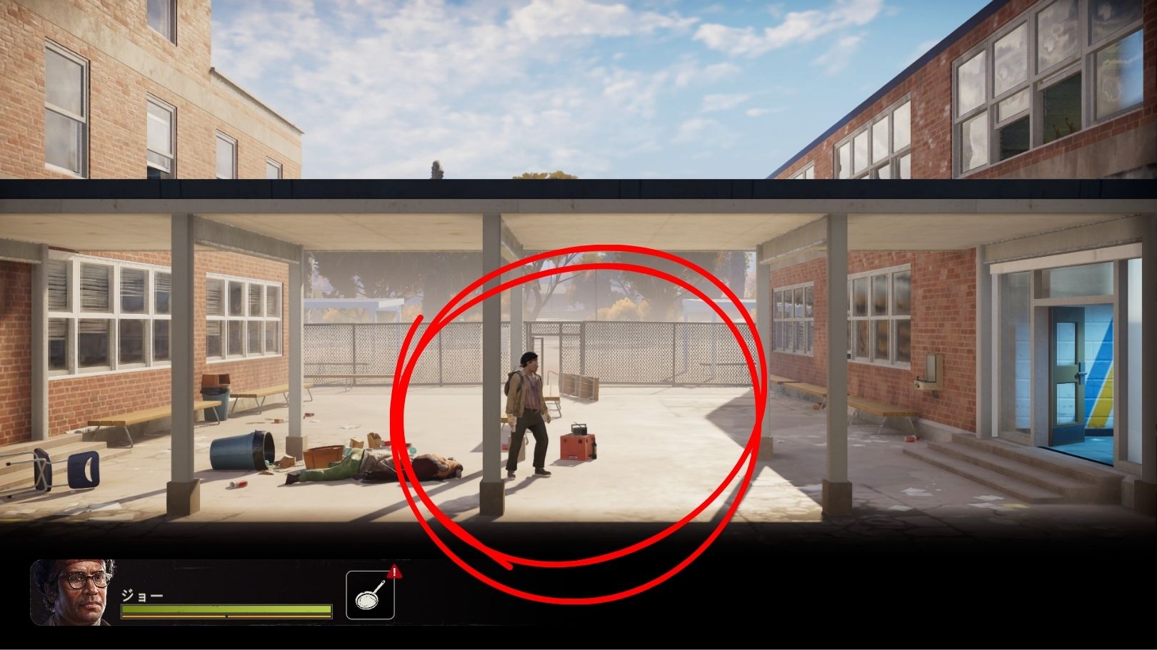 | 体育館エリア(右側) | 非活性 | 別軸(奥と手前)でゾンビが計3体。無視でOK。 |