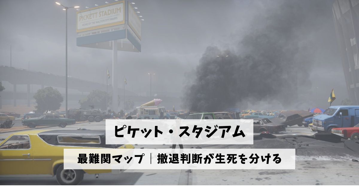 ピケットスタジアムはゾンビの数が非常に多く、ダメージを負う可能性も高いことから撤退のタイミングを見誤らないようにしましょう。
