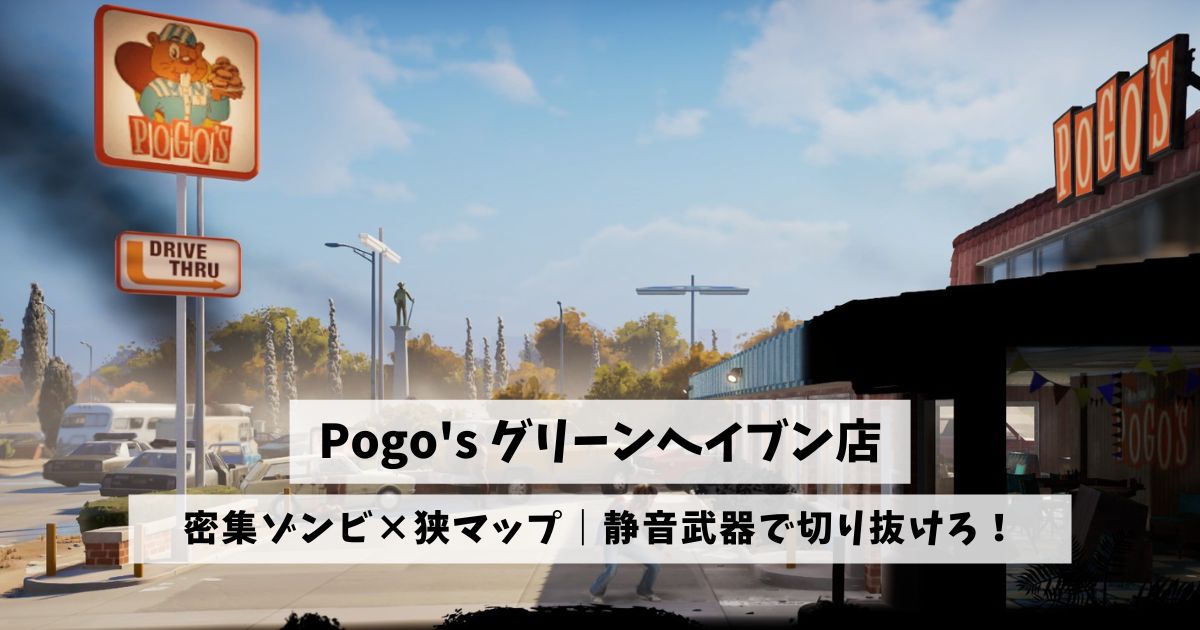 『Into the Dead: Our Darkest Days』に登場する探索地「Pogo’s グリーンヘイブン店 (ポゴ グリーンヘイブン店)」は、狭いマップにゾンビが密集しているエリアです。