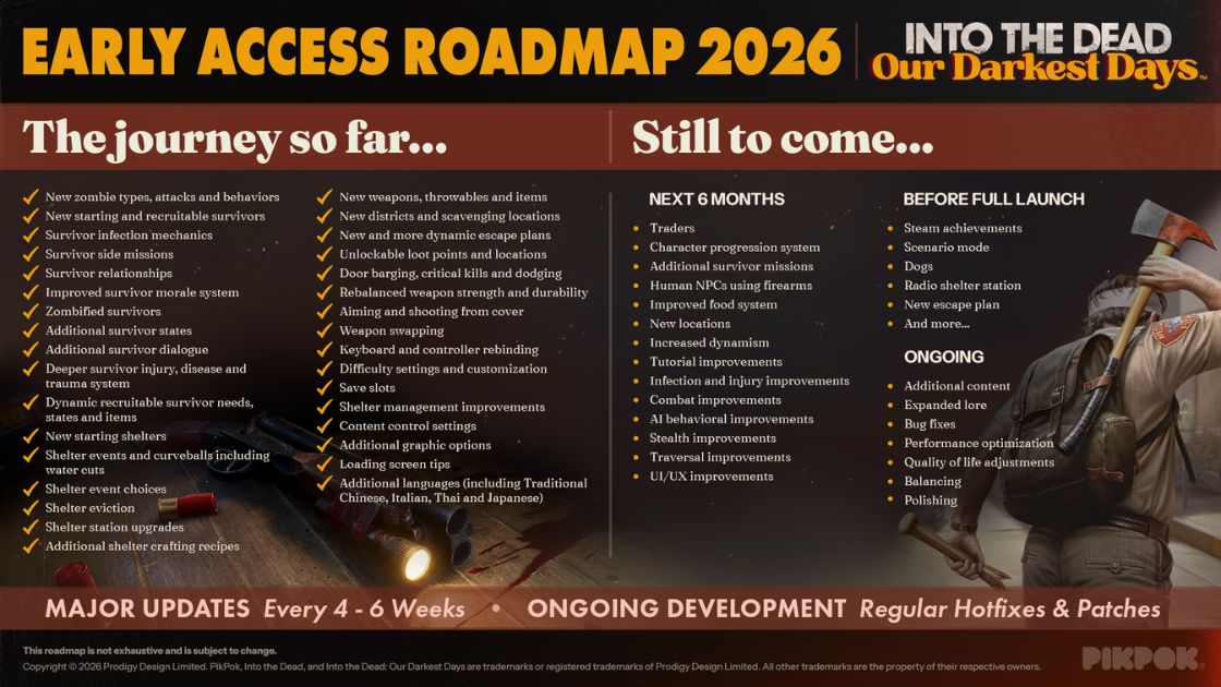 Into the Dead: Our Darkest DaysのSteam公式ニュースで、2026年版アーリーアクセスロードマップが公開されました。