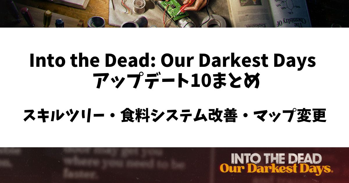 この記事では2026年4月28日(火)に配信された『Into the Dead: Our Darkest Days』のUpdate 10の変更点(新要素/調整/修正)を重要度順に整理し、プレイへの影響も短く補足します。