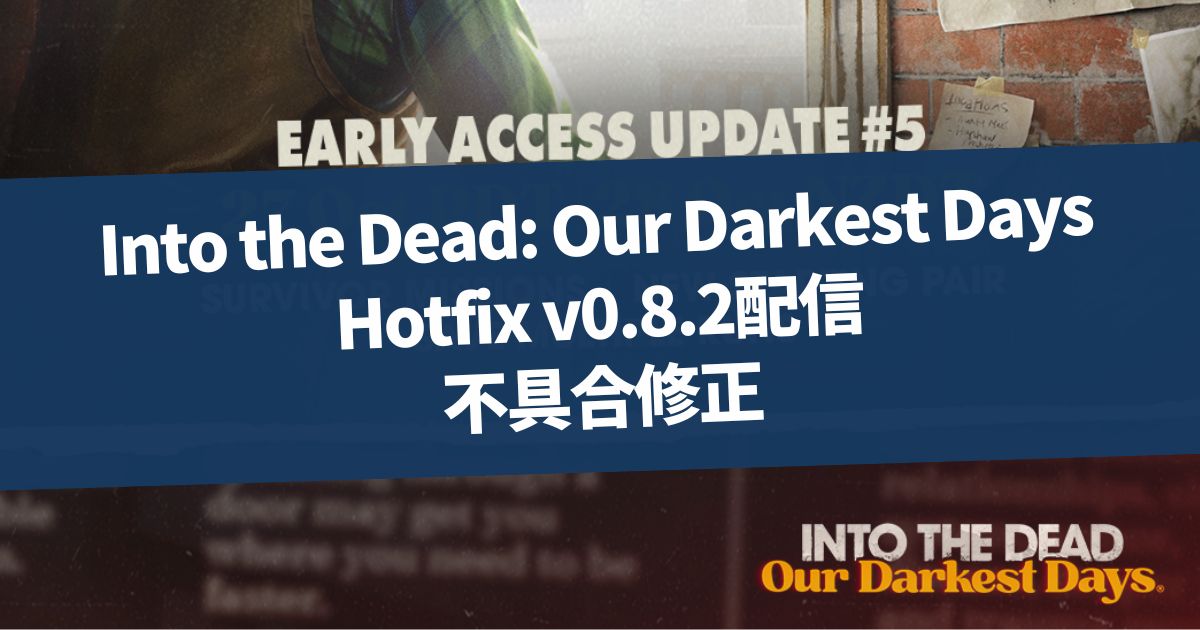 2025年10月28日にInto the Dead: Our Darkest Daysのアップデート5が配信されてから、初めてのHotfixとなるv0.8.2が2025年11月18日未明に配信されました。