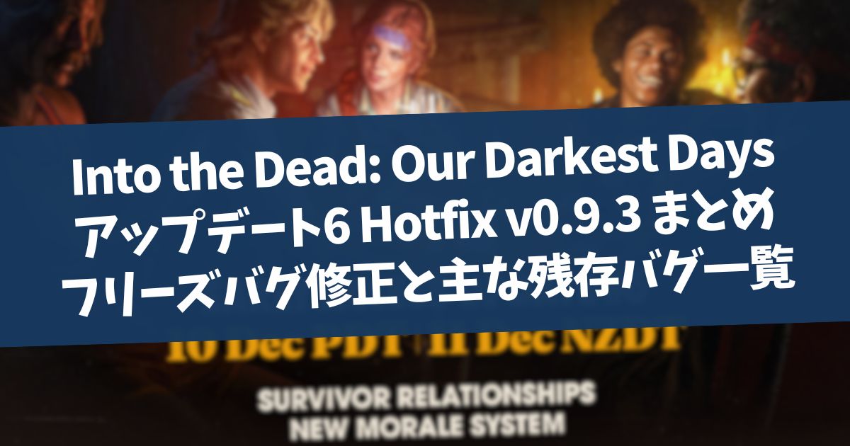 2025年12月11日にInto the Dead: Our Darkest Daysのアップデート6が配信されてから、第三弾となるHotfixとなるv0.9.3が2025年12月24日未明に配信されました。