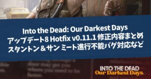 2026年2月14日未明、『Into the Dead: Our Darkest Days』アップデート8、第二弾のHotfixとなるv0.11.2が配信されました。