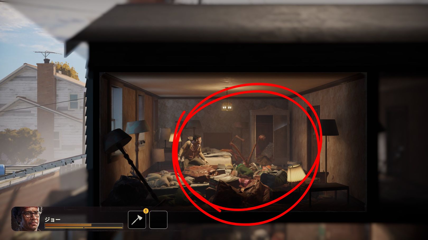 早期アクセス開始時から、下の画像のようなバグが発生していました。何度か修正されてきた項目ですがなかなか直りません。ちなみに死んだゾンビが床を貫通して下階に落ちるバグもまだ残っています。