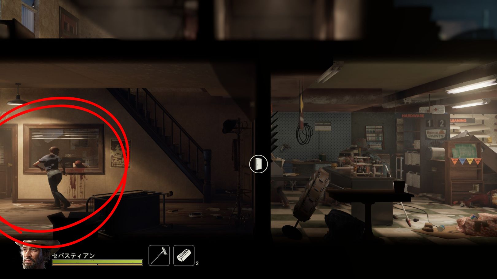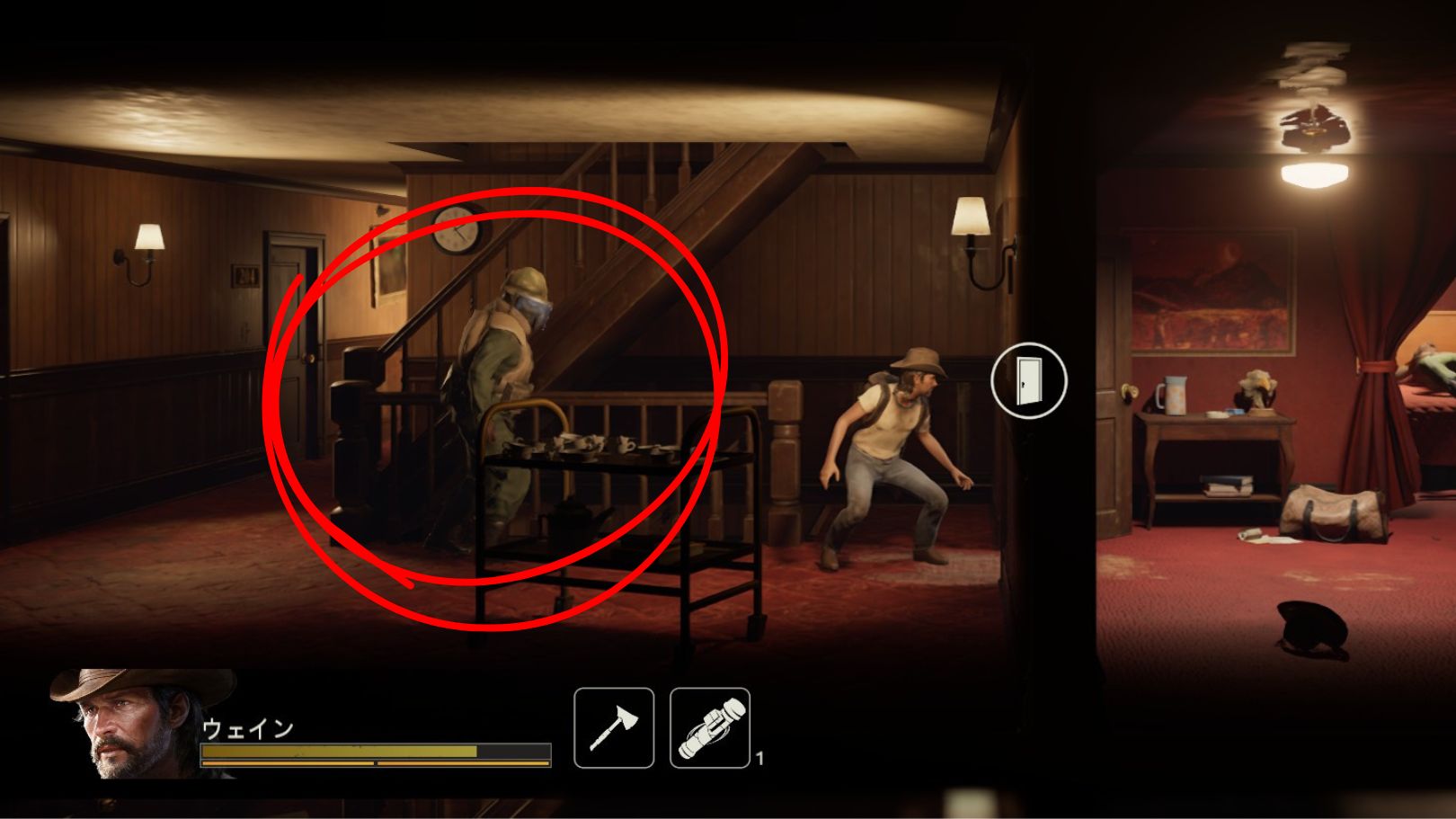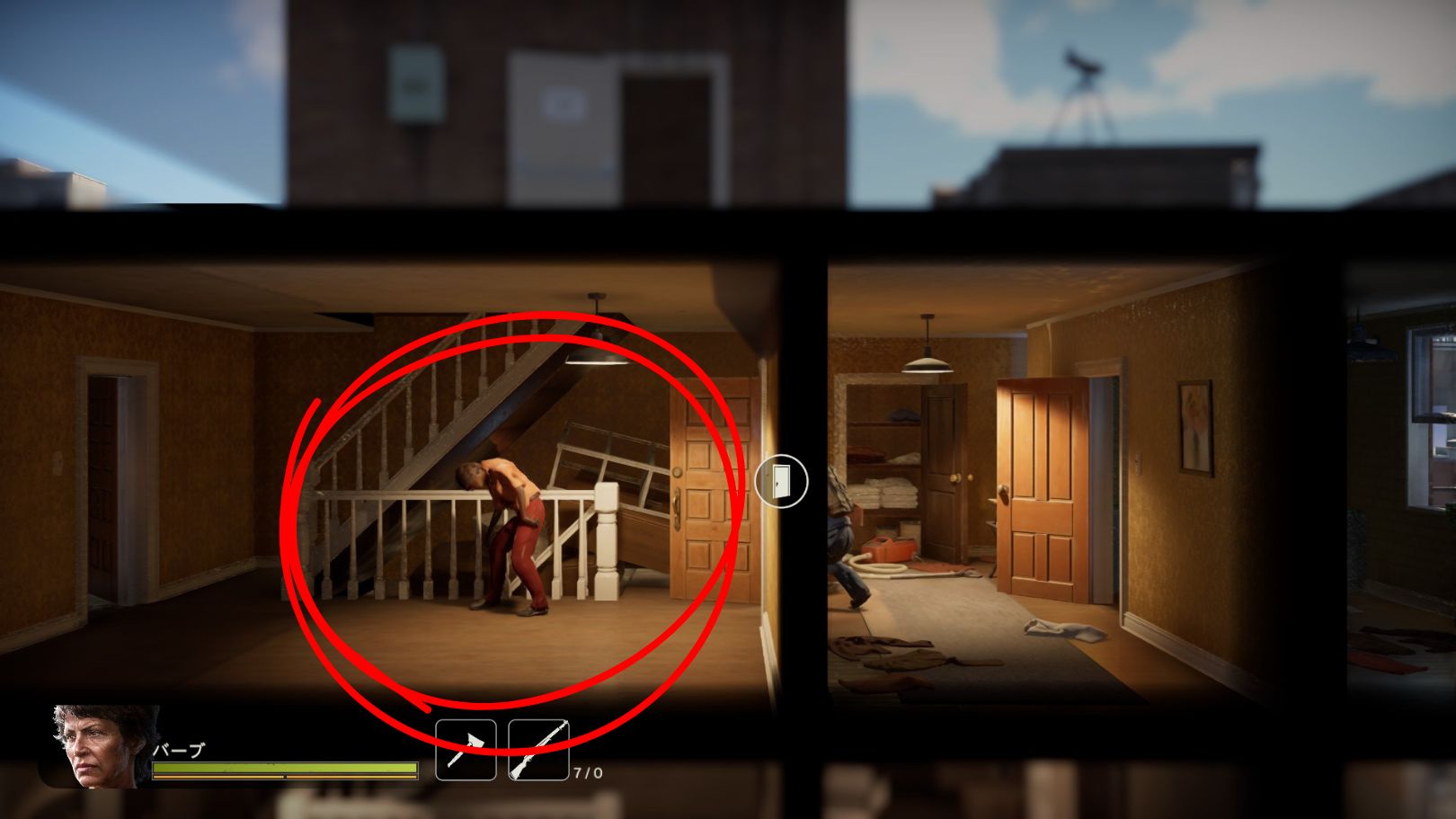 リスクを取りたくない or 煉瓦(投擲アイテム)を節約したい場合は、ドアや奥軸の遮蔽を活用してステルス・キルを狙おう。