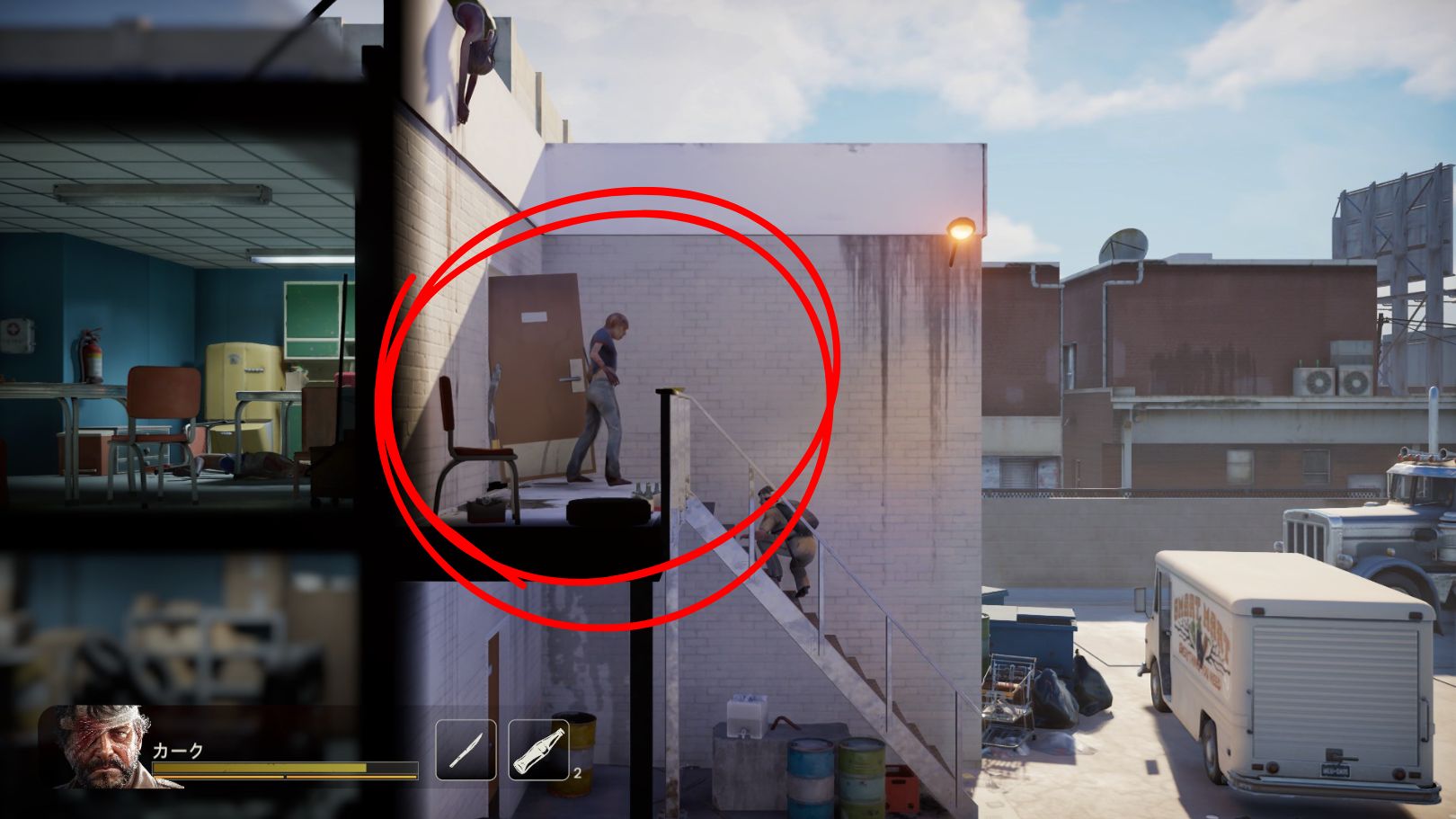 - 非活性ゾンビの近くでのステルス・キルは低騒音武器(刃物類)推奨。